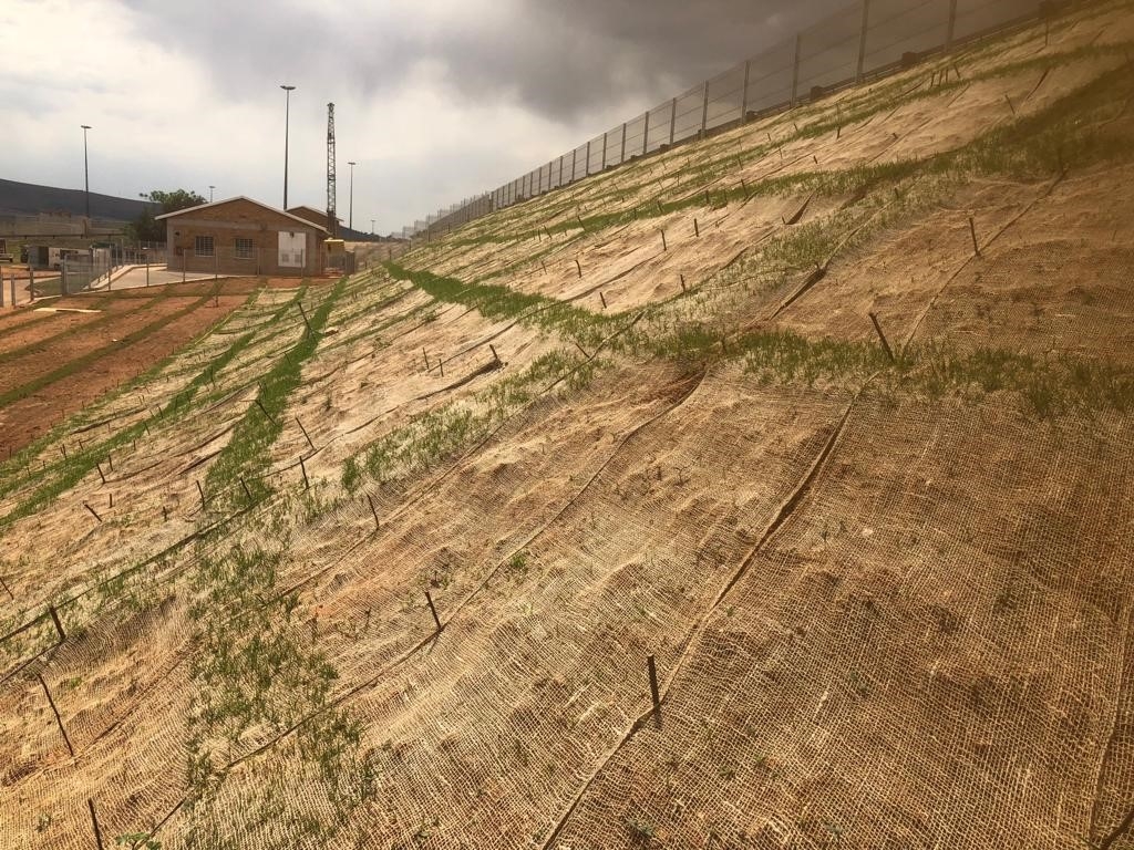 Fibertex specialists also recommend the installation of Fibertex SlopeSaver 292 – a biodegradable geojute, designed for use as a surface stabiliser for pre-vegetated slopes.